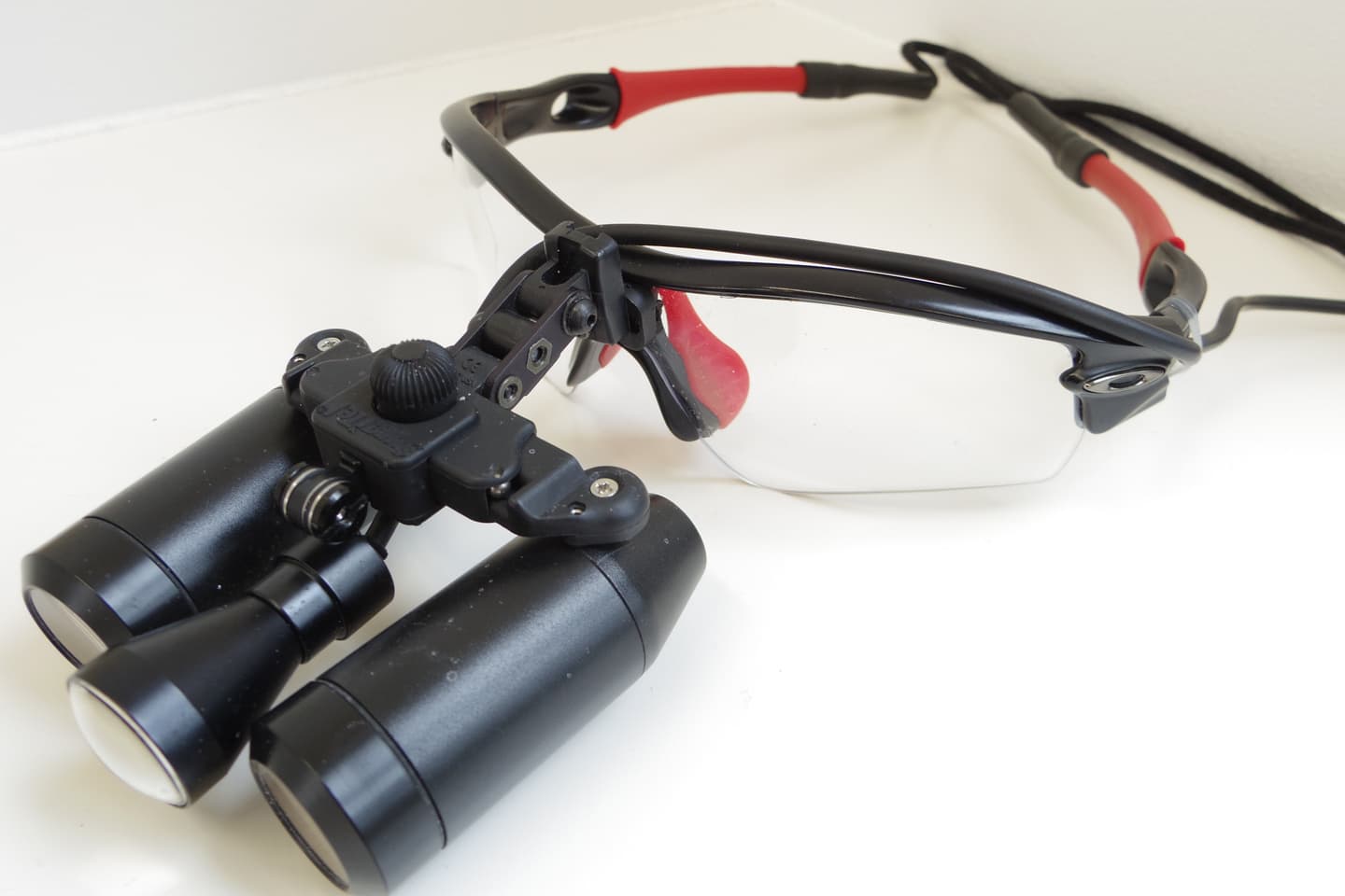 歯の治療はとても繊細です。とても細かい治療が必要な時には拡大鏡を使用します。拡大鏡を通すと8倍に見えるので、裸眼では見えない細部までしっかり見ながら治療することができます。