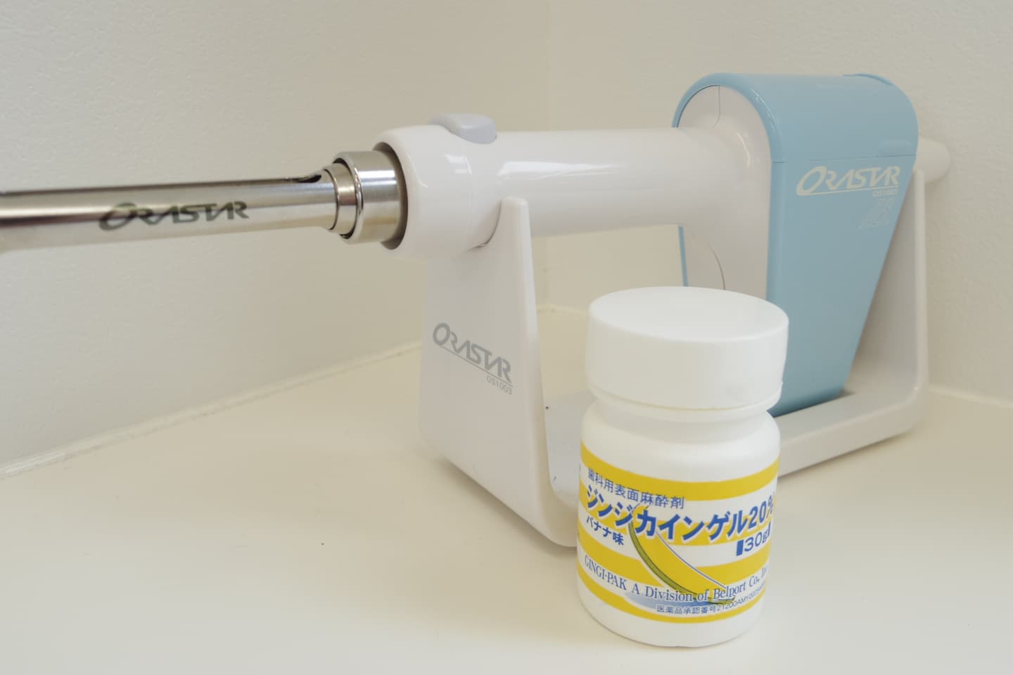 麻酔が痛むのは、針が刺さる時と麻酔薬が歯茎に入る時です。廣田歯科医院では、針が刺さる痛みを少なくするために、表面麻酔を塗ってから麻酔をします。更に、麻酔薬の温度を体温に近くし、薬の入れるスピードを調節することで痛みを軽減しています。
